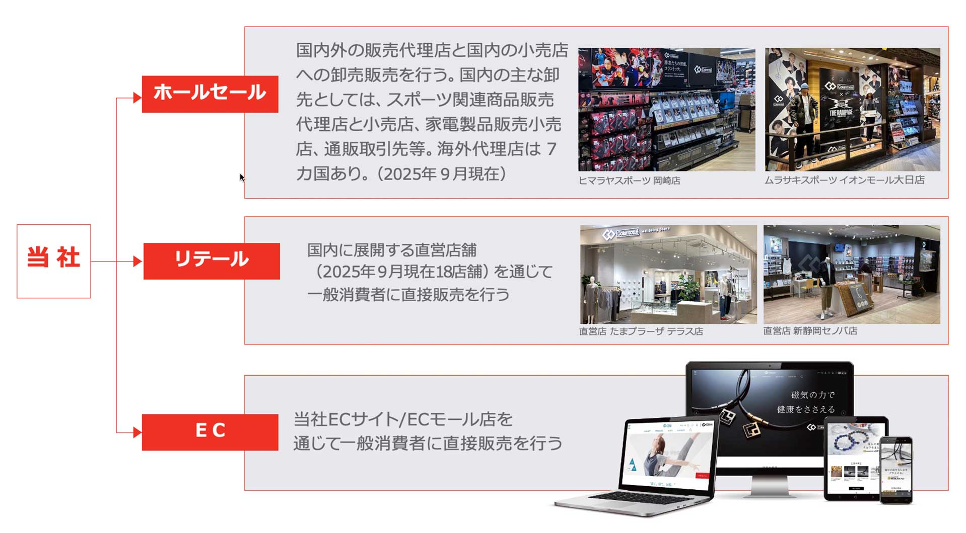 ホールセール、リテール、ECの3つの販売チャネルで事業を展開
